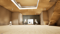 I designed an entire bunker level with three rooms. I wanted to go with a museum like aesthetic for this level. The main room has two floors...